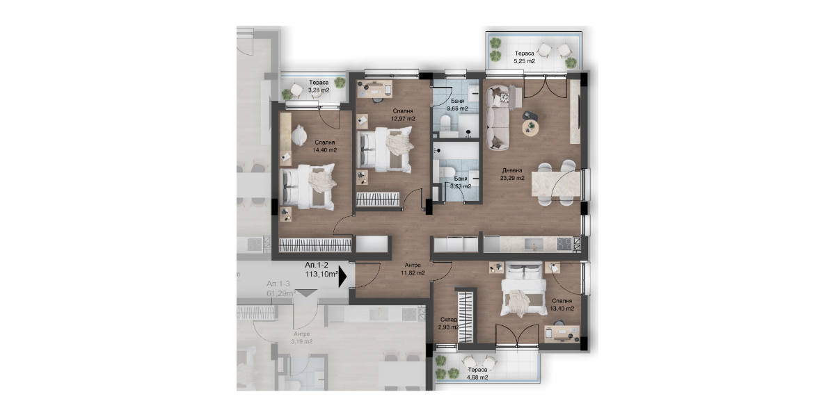 A1-61Едностаен64.8577.65СвободенExploreApartment a1-6, Floor 1, Panorama Park ENНе