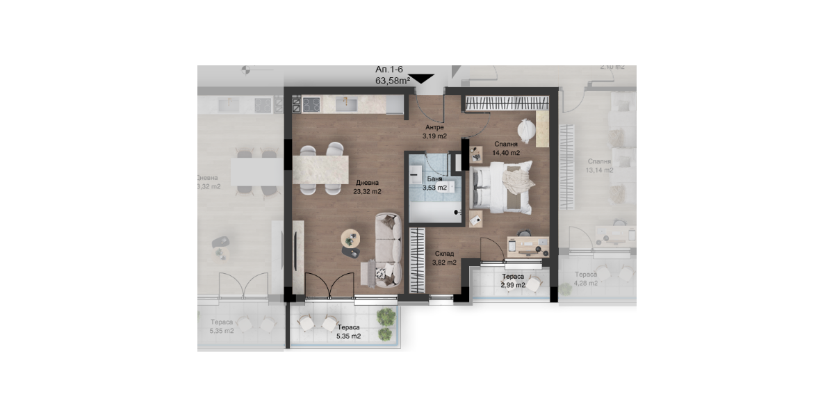 A1-61One bedroom64.8577.65AvailableExploreApartment with patio, Floor 1, Panorama Park ENYes