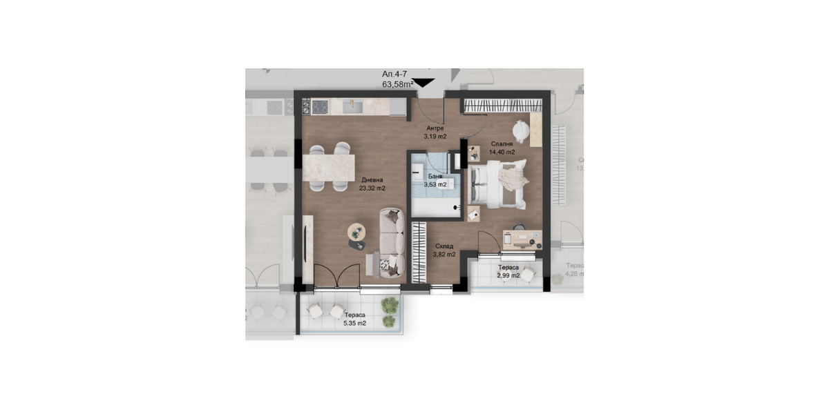 Б4-74Двустаен63.5872.71ЮгоизтокПродаденРазгледайPanorama Park, Етаж 4Не